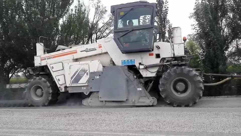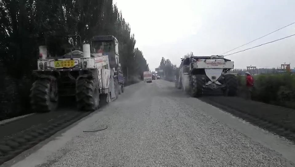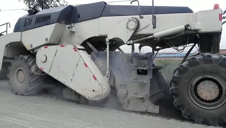 2017年8月,我公司一臺(tái)RZ2300B在山西大同與維特根WR2500同場竟技。該路段為G208國道大同北段,參與施工的RZ2300B冷再生機(jī)是我公司生產(chǎn)的經(jīng)濟(jì)型機(jī)械傳動(dòng)冷再生機(jī),功率為600馬力,雙橋驅(qū)動(dòng)。該型冷再生機(jī)雖然為經(jīng)濟(jì)型機(jī)械傳動(dòng)冷再生機(jī),與四輪升降機(jī)械傳動(dòng)冷再生機(jī)相比,實(shí)際工作效率卻一點(diǎn)也不差。該路段施工的初始500米,其強(qiáng)度近似水泥路面,如果是一般的液壓傳動(dòng)冷再生機(jī)將會(huì)完全干不動(dòng),但我們的RZ2300B經(jīng)受住了考驗(yàn),一分鐘只能跑兩米,對(duì)于機(jī)械傳動(dòng)600馬力的冷再生機(jī),這真是艱苦的工程。后續(xù)的8公里路基強(qiáng)度是標(biāo)準(zhǔn)強(qiáng)度,機(jī)器的施工輕松了許多,后期加入的一臺(tái)維特根WR2500與我們的RZ2300B并肩施工,兩機(jī)器均能跑到7米左右。